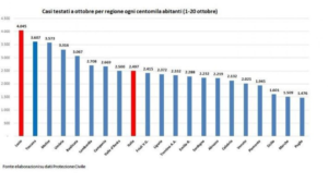 Il Lazio, secondo una rilevazione della Fondazione Gimbe nel periodo 12 agosto – 11 ottobre, risulta essere la prima regione Italiana per casi testati ogni 100 mila abitanti. La media nazionale è di 5.360 casi testati per 100 mila abitanti mentre quella della Regione Lazio è di 8.002 casi”. Lo comunica l’Unità di Crisi COVID-19 della Regione Lazio.