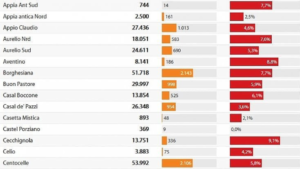 Top five dentro al Gra: Centocelle 2.106, Primavalle 2.009, Don Bosco 1.813, Gianicolense: 1.523, Villa Gordiani 1.497