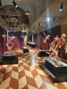 La tecnica utilizzata nella mostra è quella inventata e sviluppata dall’anatomopatologo tedesco Gunther von Hagens che nel 1977 applicò al corpo la plastinazione, sostituendo gli elementi liquidi con polimeri di silicone ed ottenendo così vere e proprie “statue umane”. Divisa in diverse sezioni, l’esposizione consente di osservare direttamente i vari organi del corpo anche con l’ausilio di visori e schermi virtuali. Una mostra itinerante che da anni richiama visitatori in tutto il mondo: l’organismo umano è presentato al pubblico dopo essere stato sottoposto ad uno speciale trattamento di conservazione, privato della cute e collocato in posizioni e posture che intendono simulare quelle tipiche di varie fasi della vita quotidiana.