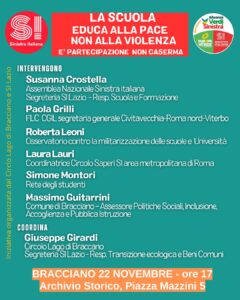 Il 22 convegno a Bracciano su scuola, pace, guerra