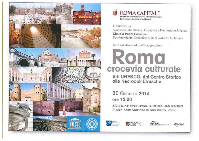 L’iniziativa è stata seguita nel Comune di Cerveteri congiuntamente dall’assessore al Marketing territoriale Nicola Barbato e dall’assessore al Turismo Lorenzo Croci. Giovedì 30 gennaio, alle ore 12, presso la Stazione di Roma San Pietro, con l’iniziativa “Roma crocevia culturale – siti Unesco dal Centro storico alle Necropoli etrusche” sarà inaugurato il nuovo spazio dedicato all’informazione turistica sui siti Unesco di Roma, Cerveteri e Tarquinia. Saranno presenti l’Assessore capitolino alla Cultura, Flavia Barca e il Sovrintendente ai Beni Culturali per Roma Capitale, Claudio Parisi Presicce.