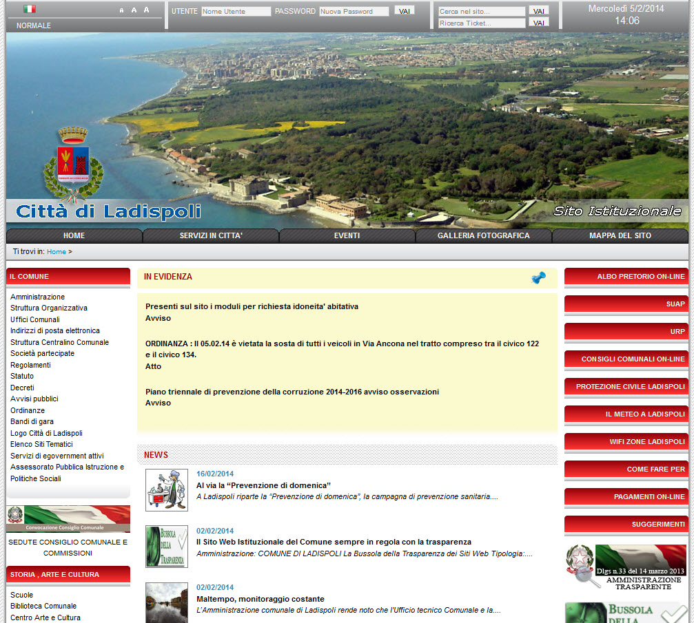 Fra le pagine piΓΉ cliccate la scheda dedicata alla raccolta differenziata e alle informazioni correlate, la pagina informativa dedicata ai conteggi Imu, la pagina del βcome fare perβ, le news, quella sui βservizi in cittaβ e βamministrazione trasparenteβ ed infine la pagina dei pagamenti on line.