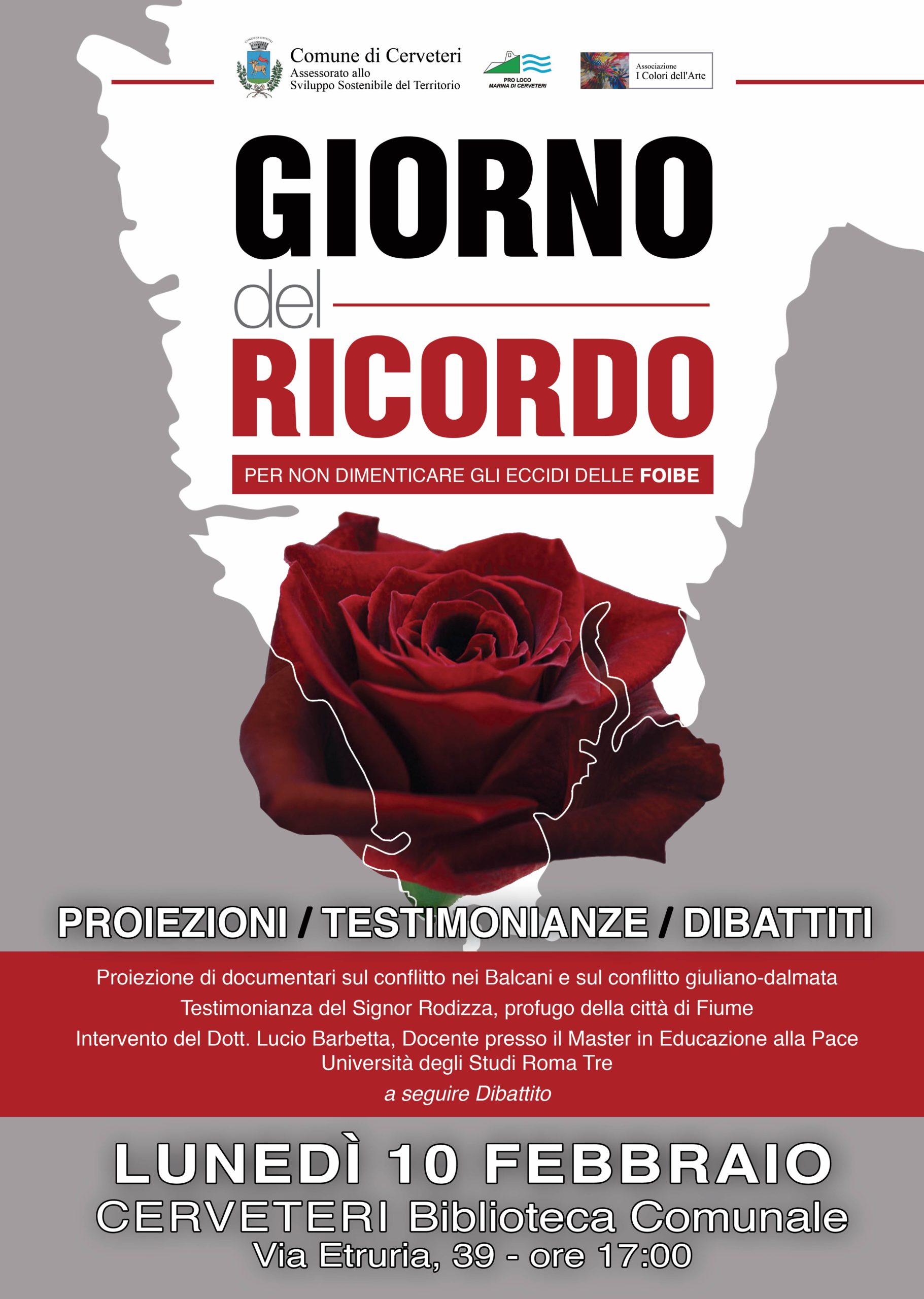 Cerveteri. Il 10 febbraio Giorno del Ricordo per le Foibe locandina-giorno-ricordo