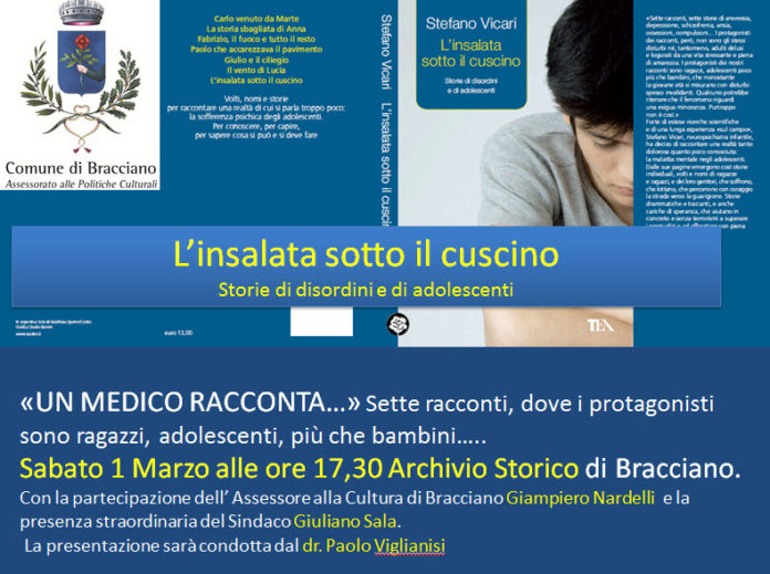 Si tiene sabato primo marzo alle ore 17.30 presso l’Archivio storico comunale di Bracciano, la presentazione del libro di Stefano Vicari “L’insalata sotto il cuscino. Storie di disordini e di adolescenti”. Il curatore dell’intero progetto, il dottor Stefano Vicari è Primario dell’Ospedale Bambin Gesù di Roma.