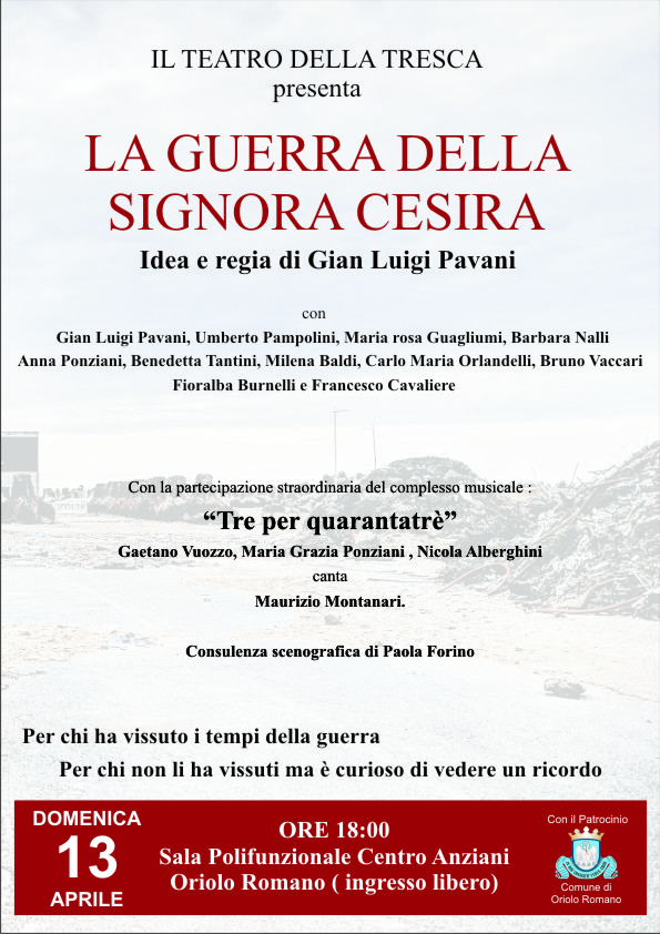 Oriolo. Domenica 13 in scena “La guerra della signora Cesira” La guerra della signora Cesira