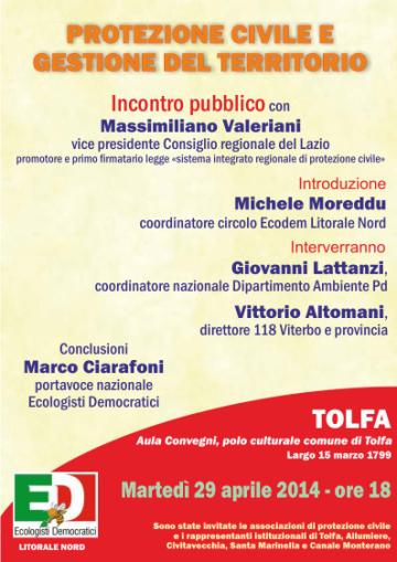 Tolfa. Iniziativa sulla nuova legge regionale della Protezione Civile Iniziativa Protezione Civile