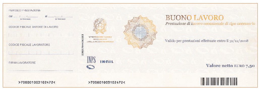 Il pagamento avverrà attraverso “BUONI LAVORO”(VOUCHER) che garantiscono copertura