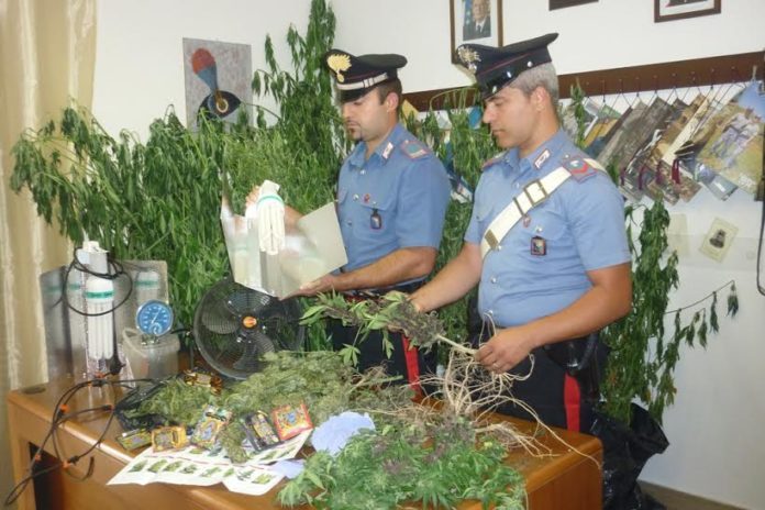 Nel corso di un servizio finalizzato alla repressione della produzione di stupefacenti, i Carabinieri della Stazione di Trevignano Romano hanno effettuato mirate perquisizioni personali e domiciliari, nel corso delle quali i due fratelli, fabbri, residenti nella ridente cittadina a nord del lago di Bracciano, sono stati trovati in possesso di una grande coltivazione di marijuana, sapientemente occultata in un terreno di pertinenza all’abitazione dei due. I militari si sono trovati di fronte ad una vera e propria coltivazione in grande stile, con le piante accuratamente disposte per file; a nulla sono valse le giustificazioni dei provetti coltivatori che hanno provato ad argomentare un’improbabile produzione per necessità personali, asserendo di essere accaniti consumatori di stupefacente.