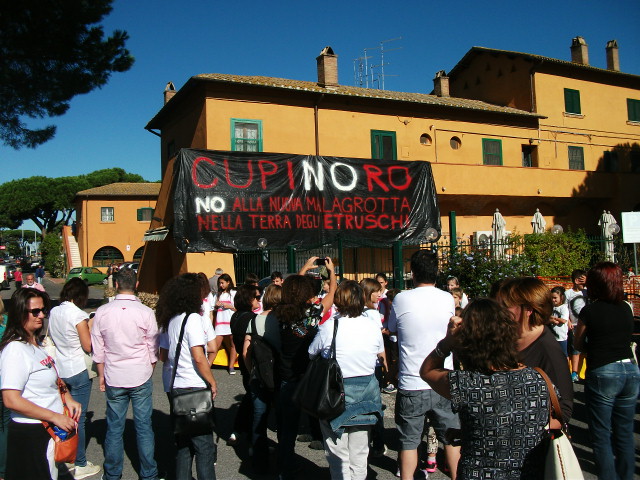 Contro la narrazione appiattita della comunicazione contemporanea, che vomita moli di dati abbattendo il confronto diretto tra le popolazioni, propagandando l’incenerimento a macchia d’olio come panacea per tasche e menti. Contro l’indifferenza travestita da dinsinganno spiccio. Contro il muro di omertà e di diverbi italioti. Verso un forma semplice e concreta di dialogo. Mani, voci, sguardi. Anche da un semaforo all’altro. C’è chi chiede trasparenza e informazione, chi invita la collettività a ragionare in termini di sostenibilità e di ricerca. C’è chi pensa all’avvenire dei bambini, ad un territorio fiaccato da crisi e da politiche che non rintracciano risorse e pianificazione nella vera cultura della differenziata e nel reale circuito del riciclaggio, ma nel valore nudo dell’indifferenziata. Dalla buca all’incenerimento. Quali prospettive? Questi argomenti e domande si sono animati tra i manifestanti radunati il 27 settembre dalle 10 del mattino sotto il sole dell’Aurelia, presso Torrimpietra (Fiumicino), magliette candide sul petto, un unico slogan, “Fermiamo Cupinoro”, mescolato nelle voci di chi ha deciso di ricominciare a lottare nella pubblica piazza.