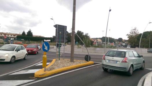 il traffico proveniente da Roma per andare verso via S.Lucia (SP 493) percorre la rotatoria contro-mano.
