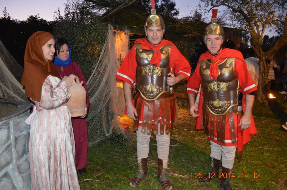 Un piccolo, ma ricco, percorso che inizia dalla tenda del censore romano e prosegue tra il banco delle stoffe e della pasta fresca fatta al momento, fino ad arrivare all’osteria dove viene sfornata dell’ottima pizza calda, infine si arriva alla grande capanna dove si rivive il mistero della Natività.