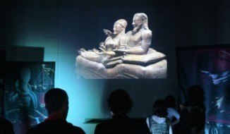 “La mostra – spiega la Dott.ssa Paola Marzano – è il risultato di uno studio approfondito realizzato sul Sarcofago degli Sposi. Studiando la gestualità dei due personaggi effigiati sul sarcofago infatti, ho notato delle corrispondenze con le gestualità tipiche delle divinità indiane. Partendo dall’ipotesi di Erodoto sulla matrice orientale di questo popolo dalle origini incerte lo studio continua con l’analisi del gesto delle loro mani da cui emerge un linguaggio segreto ermetico, che fa da ponte tra epoche e culture. Un gesto che parla dell’amore reciproco fra i due Sposi, del rispetto e della considerazione di cui godeva la Donna nella società etrusca”.