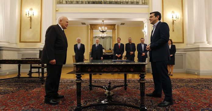 Tsipras ha giurato nelle mani del presidente della Repubblica ellenica che gli ha conferito l’incarico di formare il nuovo governo dopo la vittoria di ieri alle elezioni politiche e, come preannunciato, Tsipras ha fatto un giuramento solo politico e non religioso.