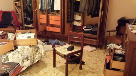 Il suo appartamento a Cesano completamente sottosopra.