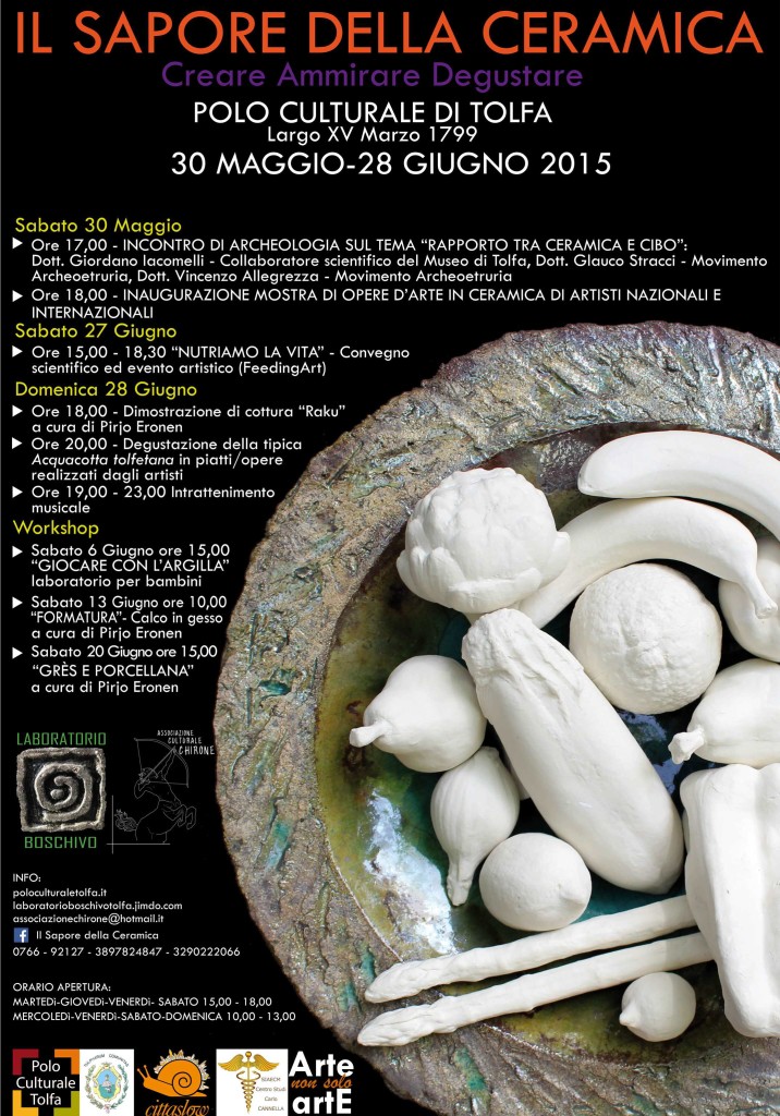Dal 30 Maggio al 28 Giugno presso il Polo Culturale di Tolfa, Largo XV Marzo 1799, l’evento “Il Sapore della Ceramica”, Creare Ammirare Degustare.