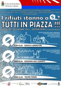 TUTTI IN PIAZZA! Sabato 13 Giugno a Cerveteri in p.za Risorgimento dalle 17 alle 21 per giocare assieme alla Coop. Anima Mundi . L’evento racchiude e raccoglie i risultati del progetto “I RIFIUTI STANNO A 0?” finanziato da Città Metropolitana di Roma Capitale, che ha visto coinvolte le scuole di tutto il territorio tra il lago di Bracciano ed il litorale Roma Nord.