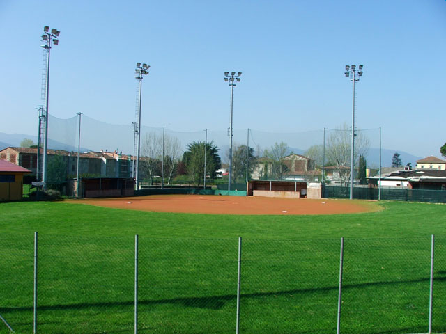 Sono stati realizzati anche un impianto di irrigazione ed a supporto dell’impianto una struttura a tre blocchi per servizi spogliatoi, wc, docce.  Il fronte della cava è stato rivestito con rete paramassi e con una fascia di verde di interdizione, realizzando un piacevole recupero ambientale.