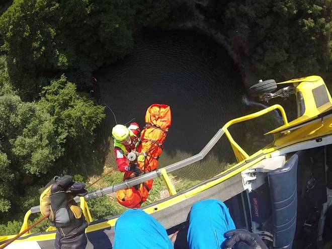 Una fune con personale medico è stata calata dal mezzo per 50 metri per raggiungere il ragazzo, che presentava evidenti sintomi d’annegamento, intubato e imbarcato su una lettiga per trascinarlo fuori dall’incubo.