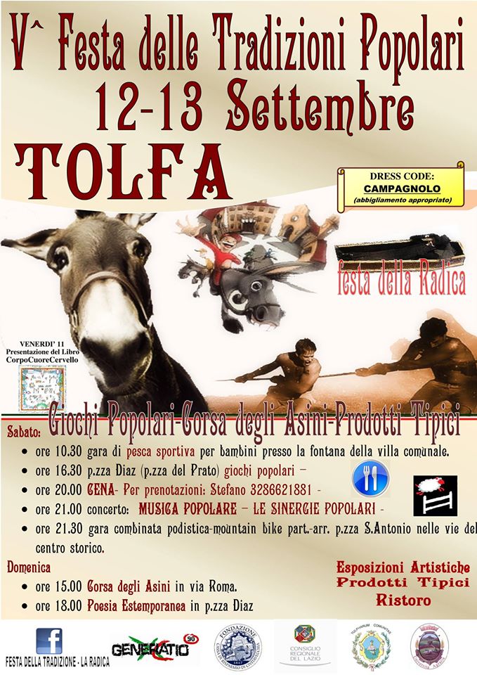 Torna la “Festa delle Tradizioni popolari – La Radica” evento, promosso ed organizzato dall’associazione Generatio 90 con il Comune di Tolfa, l’Università Agraria, la Comunità Montana, con il contributo della Fondazione Cariciv e con la partecipazione della Banda G.Verdi di Tolfa, del gruppo podistico Airone, del gruppo ciclistico mountain bike di Tolfa, dei circoli poetici “Battilocchio” di Tolfa e quello “APA” di Allumiere.