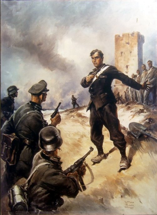 Il Carabiniere Medaglia d’oro che sacrificò la propria vita per salvare degli innocenti, arrestati a Torrimpietra il 23 settembre 1943 per essere passati alle armi come rappresaglia ad un “attentato”, in cui era morto un soldato tedesco. In quella terribile giornata, caso volle che a Torrimpietra un venditore e un commerciante di Santa Marinella: Oreste Mannocci e Sergio Manzoni, diretti a Roma, incapparono nel rastrellamento di civili e vennero condotti insieme agli altri nel luogo dell’esecuzione dove iniziarono a scavare la possa prima di essere passati per le armi. I due nomi infatti spiccano nell’elenco di quei 22 stilato dal Comitato Salvo d’Acquisto.