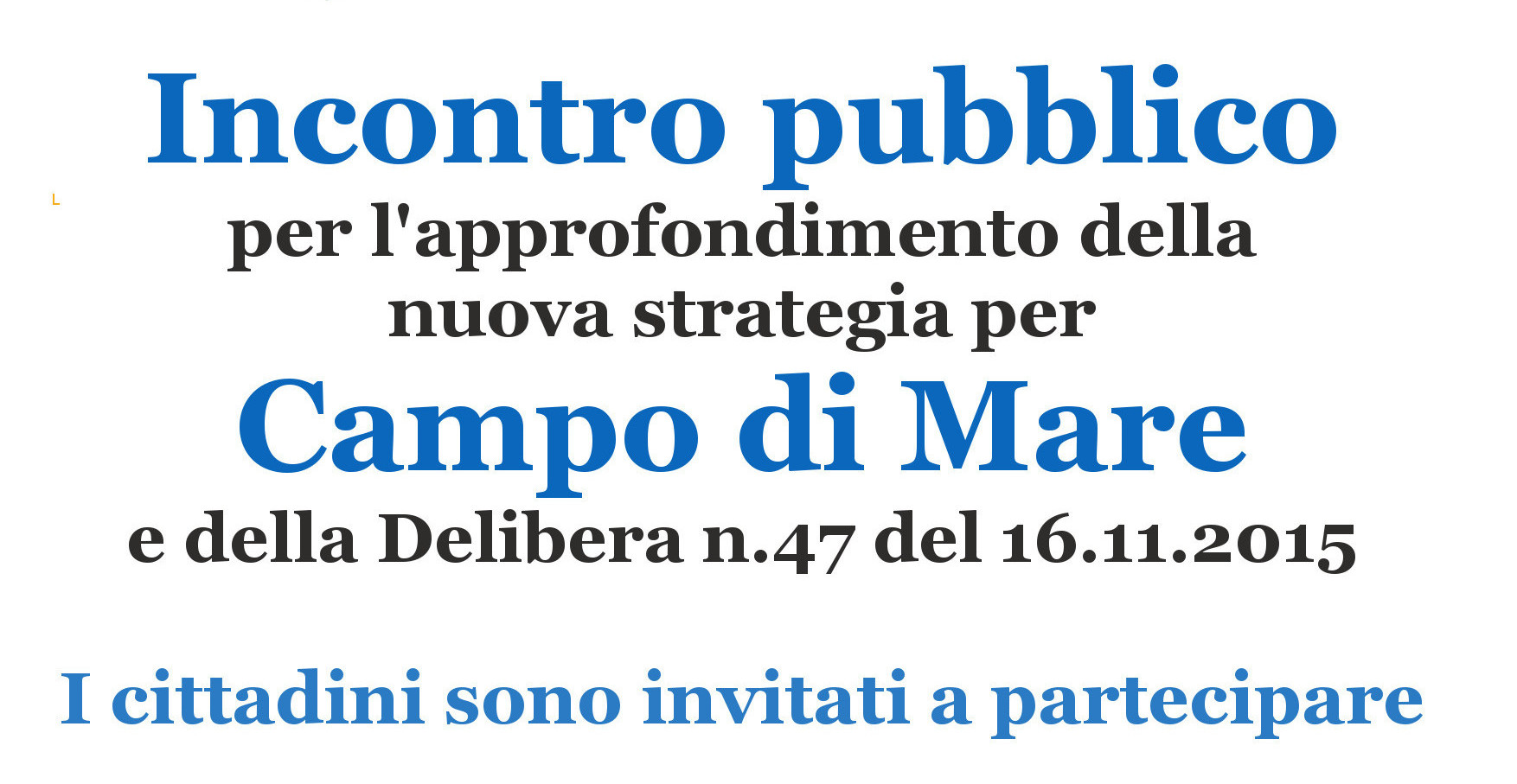 Domenica pomeriggio alle 17.30 presso il bar Da Franco, a Campo di Mare, i cittadini potranno richiedere all’Amministrazione comunale tutti i chiarimenti sulla delibera approvata Lunedì sera in Consiglio dalla Maggioranza e da una parte dell’Opposizione.