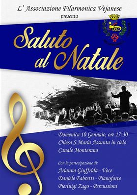 L’associazione culturale Tuttaunaltrastoria è lieta di ricordare ai cittadini del comprensorio sabatino che domenica 10 gennaio, alle ore 17:30, presso la Chiesa di Santa Maria Assunta in Cielo di Canale, l’Associazione Filarmonica Vejanese ripeterà il concerto “Saluto al Natale” che il 20 dicembre scorso ha riscosso un incredibile successo di partecipazione e critica a Vejano.