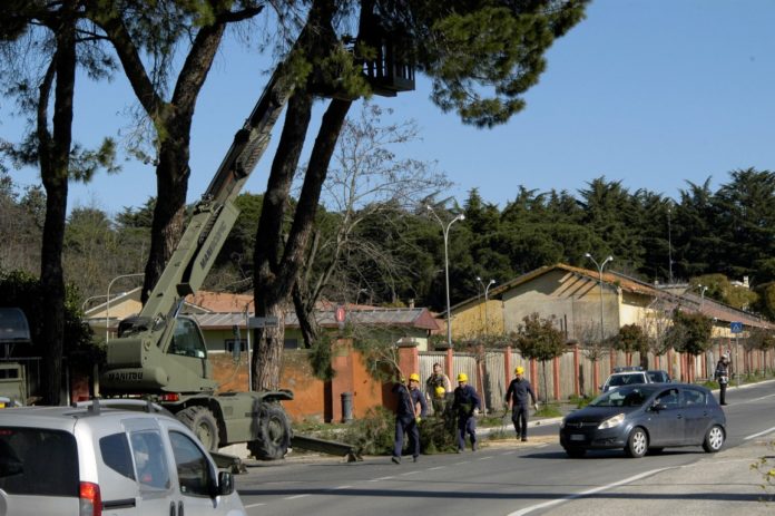 Nei giorni scorsi una squadra di militari dell’Esercito Italiano effettivi alla Scuola di Fanteria è intervenuta per la potatura e messa in sicurezza delle alberature su via della stazione di Cesano.
