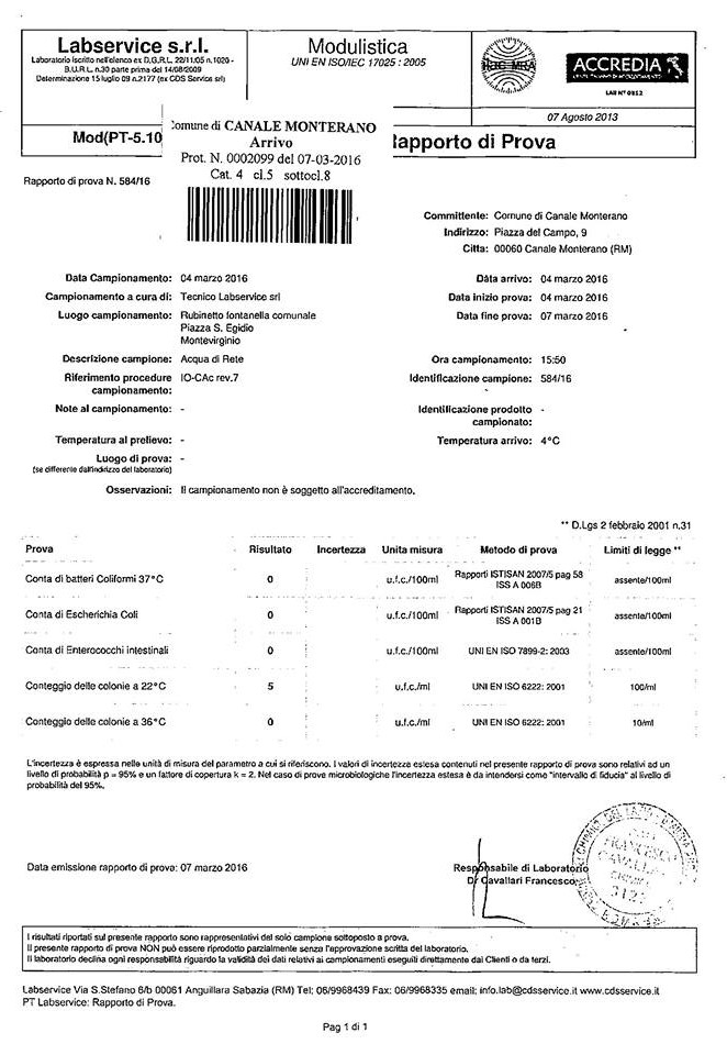 “Il 3 marzo scorso è giunta in Comune una comunicazione della Asl relativa all’analisi batteriologica effettuata il 25 febbraio 2016 sulle acque provenienti dai pozzi dei Casalini. Nella comunicazione – precisa Stefani – per un probabile errore di battitura sono state sicuramente invertite le analisi con quelle di altro comune e comunque nel dubbio, ho immediatamente provveduto a far effettuare nuove analisi batteriologiche complete che hanno confermato la buona qualità delle acque provenienti dai pozzi dei Casalini. Il referto delle analisi effettuate in data 4 marzo mostrano parametri in linea con le normative di legge. Non appena saranno disponibili le nuove analisi predisposte dalla ASL – conclude Stefani – sarà nostra pubblicarle”.