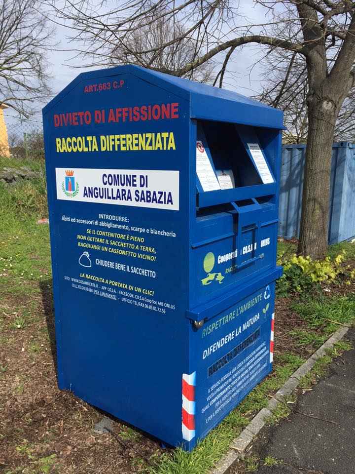 Anguillara dispone ora di 22 contenitori che sono stati dislocati su tutto il territorio comunale, nuovi e dotati degli accorgimenti necessari ad evitare il saccheggio, verranno svuotati ogni 10 giorni