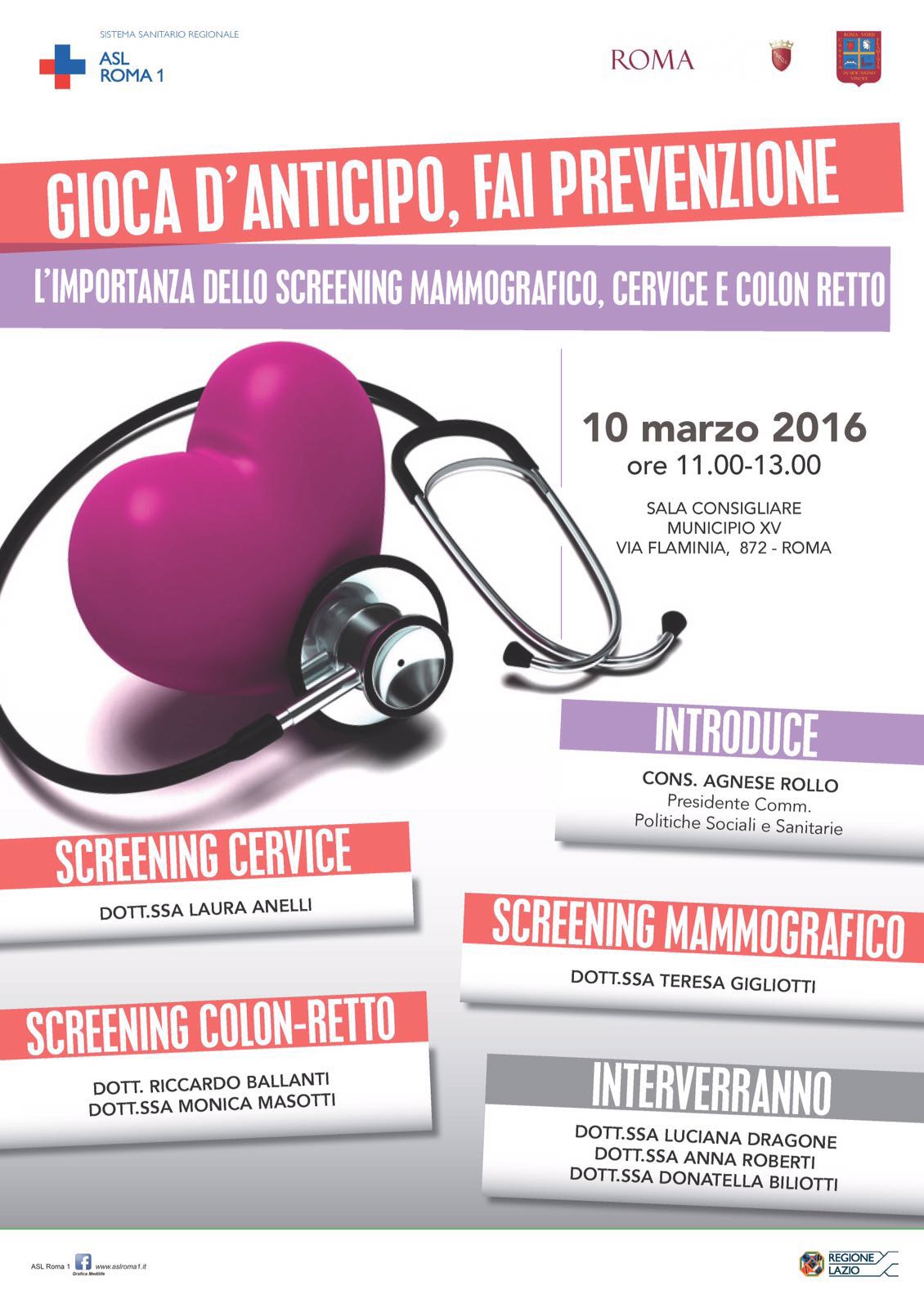 “Fare lo screening che salva la vita”, la campagna divulgativa per gli screening per fasce di età, la Regione Lazio insieme alla Asl RM 1 invitano i cittadini e le cittadine che vivono e/o lavorano a Roma a partecipare alla campagna per gli screening: – mammografia (donne 49/69) – pap-test (donne 25/64) – colonrettale (uomini e donne 50/74). Chiamando al n. 800 53 66 93 si potranno prenotare gli screening gratuiti, da effettuarsi presso la ASL RM 1 ed nei Consultori.