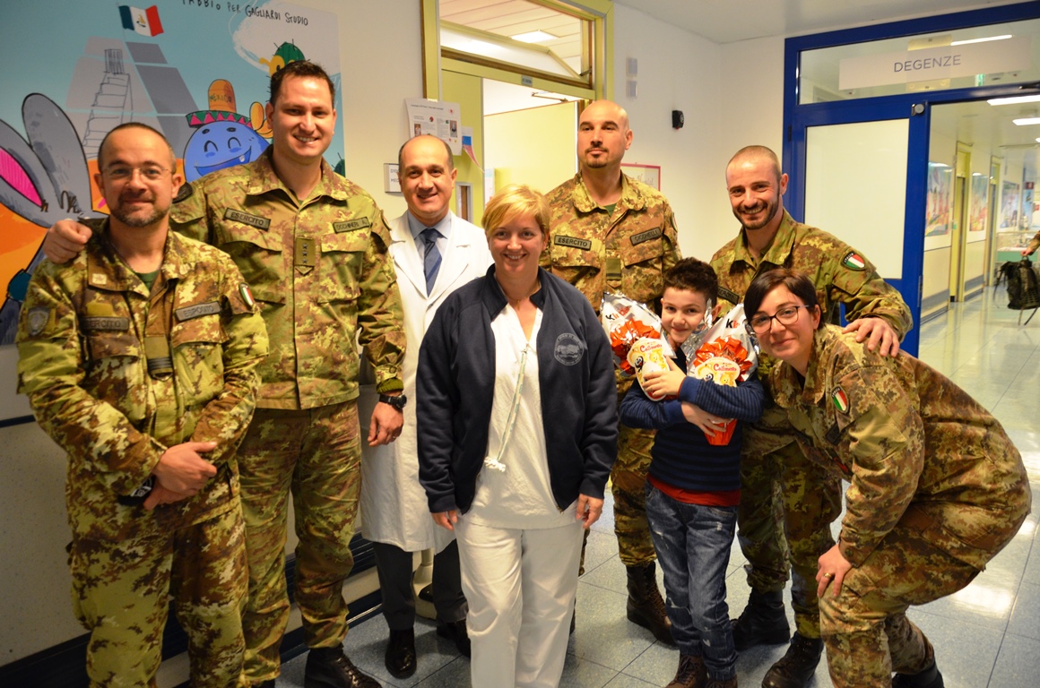 L’iniziativa è nata da una lettera indirizzata al Comandante della Scuola e scritta dal piccolo Mirko, un bambino di otto anni ricoverato in ospedale da circa un anno e nipote di un militare effettivo presso l’Istituto. Nella lettera, Mirko chiedeva di poter trascorrere qualche ora in compagnia dei militari e regalare così qualche sorriso a lui e agli altri bambini del reparto. La proposta del bambino è stata subito accolta con gioia dal Comandante della Scuola di Fanteria, Generale di Brigata Massimo Mingiardi.