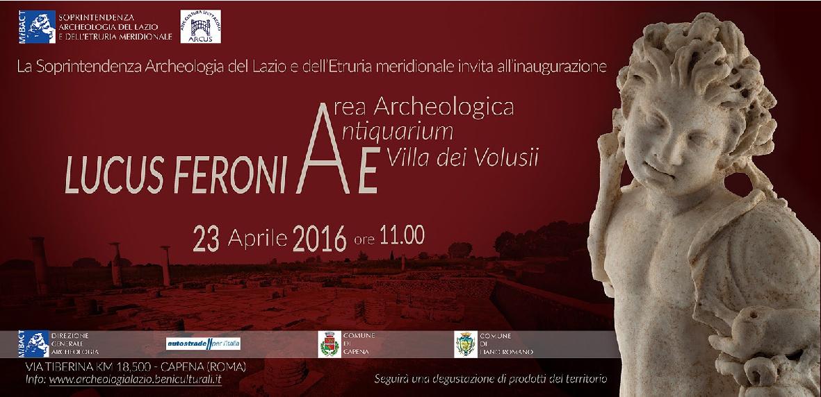 Un importante progetto di valorizzazione territoriale vede oggi la sua completa realizzazione grazie all’azione congiunta della Soprintendenza per i Beni Archeologici dell’Etruria meridionale (oggi Soprintendenza Archeologia del Lazio e dell’Etruria meridionale) e la Società ARCUS. Si riaprono al pubblico, con aspetto rinnovato e in unico percorso di visita, la suggestiva area archeologica di VI-III secolo a.C. del santuario del Lucus Feroniae (bosco sacro dedicato a Feronia, dea italica della fertilità dei campi e propiziatrice dei commerci), la contigua colonia romana del I secolo a.C. (Iulia Felix Lucoferonensium), con l’annesso Antiquarium, nel comune di Capena, e la villa dei VolusiiSaturnini, nel comune di Fiano Romano.
