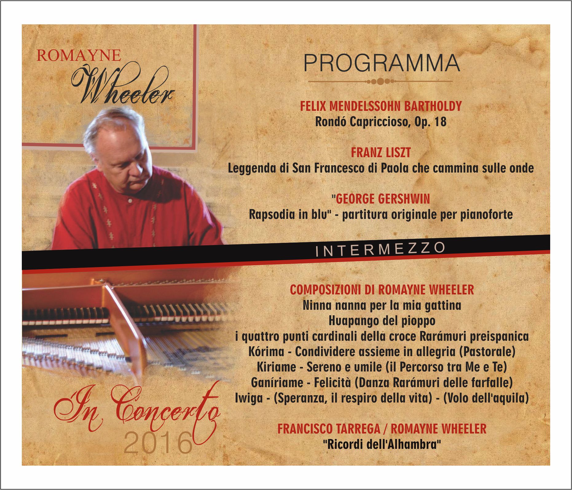 Il pianista, compositore e poeta Romayne Wheeler, nato nel 1942 in California, dopo aver studiato pianoforte a Vienna, entra in contatto con gli indiani Tarahumara e resta affascinato dal loro stile di vita, l’intima relazione tra il mondo della natura e quello dell’anima.