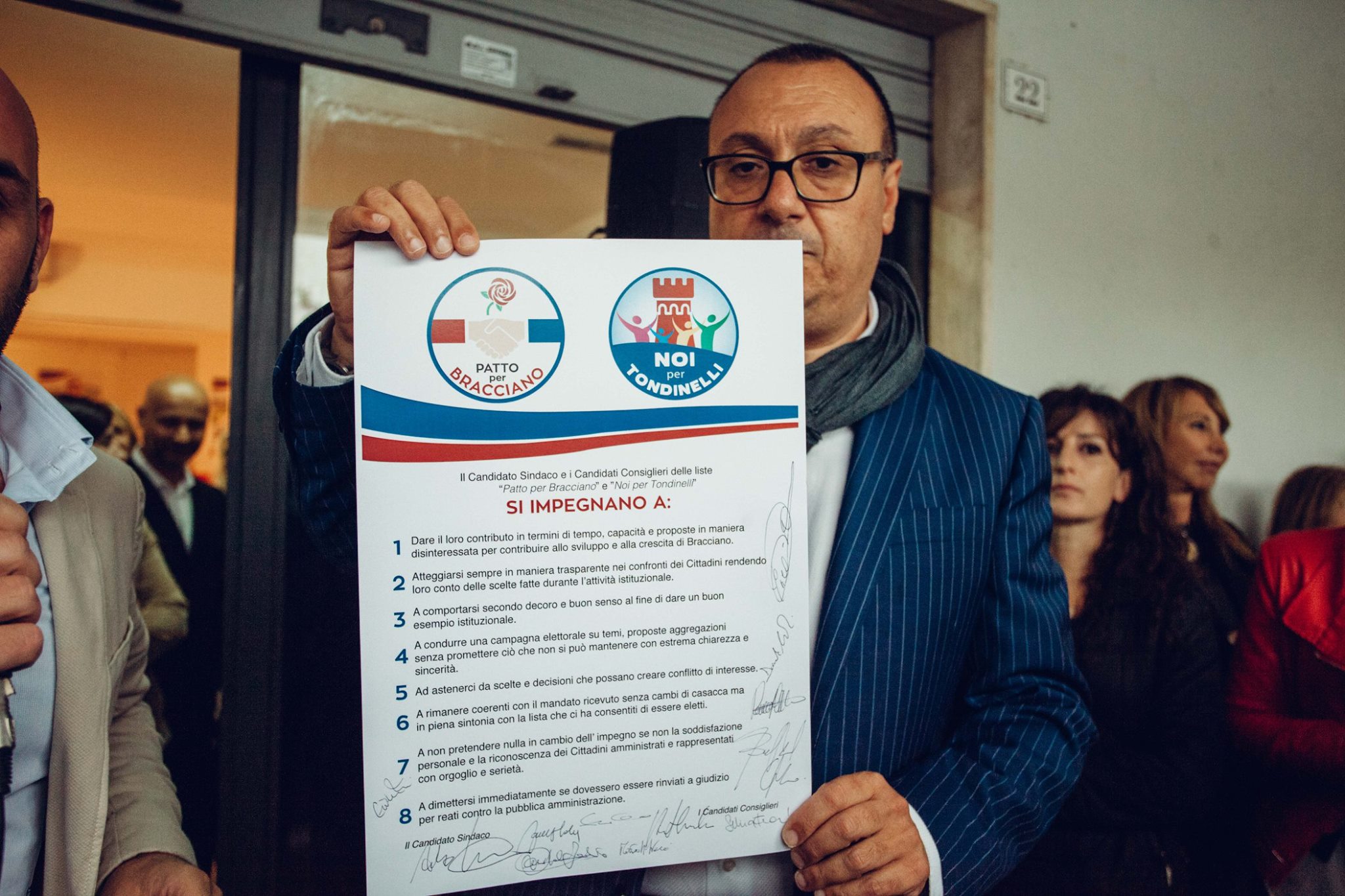“Abbiamo firmato tutti, io in primis come candidato sindaco e chi ha deciso di sostenere il nostro progetto presentandosi come consigliere, un PATTO che ci impegna al rispetto di valori etici e morali, ultimamente non appartenenti alla cultura dell’amministrazione braccianese”.