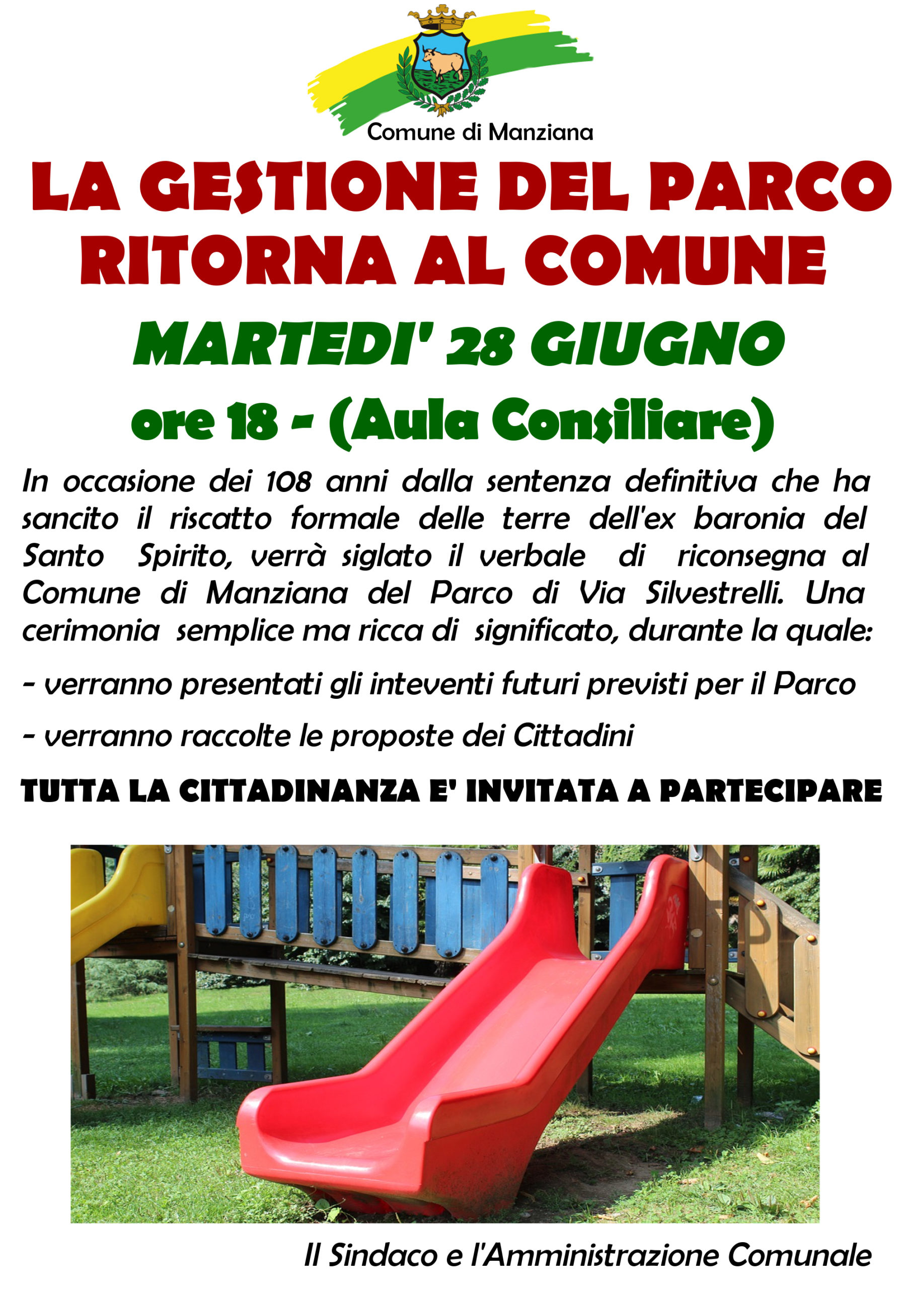 Martedì 28 giugno, alle ore 18, presso l’aula consiliare, si terrà una semplice ma significativa cerimonia durante la quale verrà siglato il verbale di riconsegna al Comune del parco di Via Silvestrelli. “La scelta della data del 28 giugno non è casuale ma da me fortemente voluta per la sua valenza simbolica – dichiara il Sindaco, Bruno Bruni – Infatti, proprio il 28 giugno del 1908 venne resa nota la sentenza definitiva della “Regia Corte d’Appello di Roma” che respingeva il ricorso del Pio Istituto del Santo Spirito e sanciva ufficialmente il riscatto formale delle terre dell’ex baronia. Ricordando quella data storica per Manziana e per tutti noi Manzianesi, simbolicamente il Comune riprende in mano la gestione del parco pubblico di Via Silvestrelli: un altro spazio che speriamo possa essere apprezzato dai Cittadini che spesso avevano lamentato, specialmente per i bambini più piccoli, l’assenza di uno spazio idoneo. Al momento il Parco è comunque poco ombreggiato ma stiamo cercando delle soluzioni.”