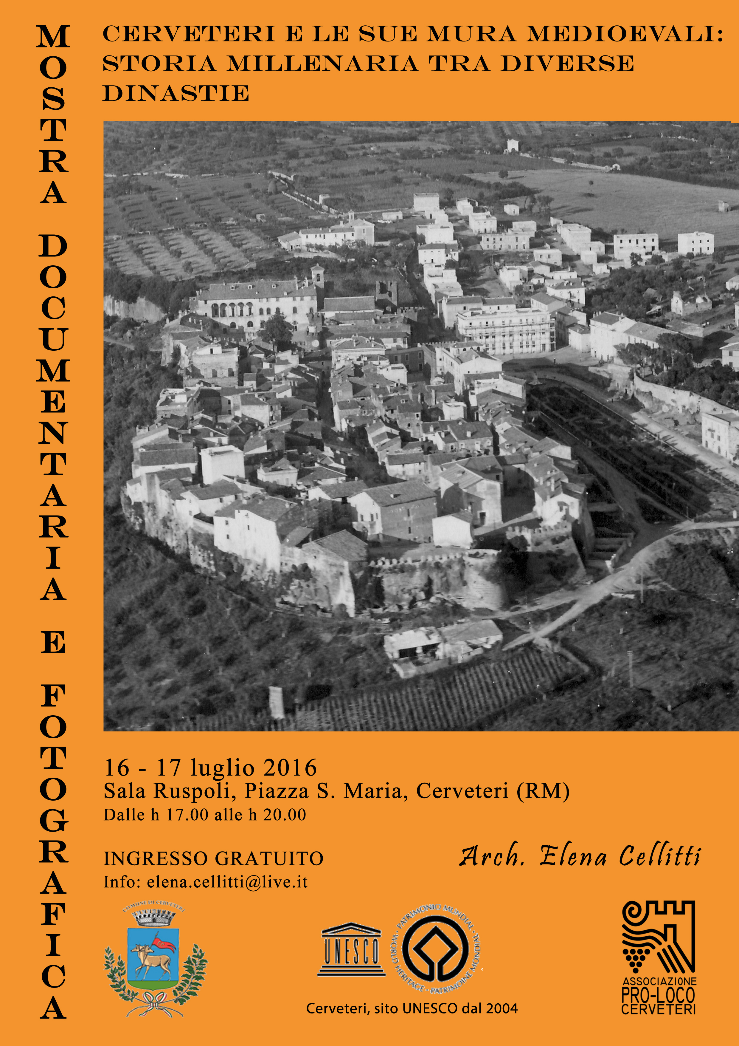 Avrà luogo nei giorni 16 e 17 luglio la mostra documentaria e fotografica “Cerveteri e le sue mura medioevali: storia millenaria tra diverse dinastie”, un’esposizione storica ospitata presso la Sala Ruspoli (Piazza S. Maria) di Cerveteri.
