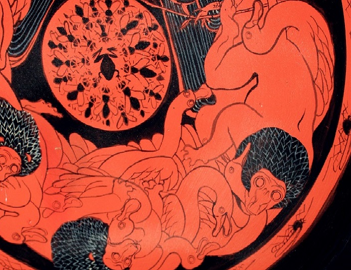 Il gioco prende le mosse da una dinamica assolutamente consueta e nota a tutti gli archeologi che hanno la ventura di imbattersi nei ben noti ‘scavi di magazzino’, gli stessi che quotidianamente gettano nuova luce, a colpi di diari di scavo, reperti e documenti di archivio ‘sommersi’, su contesti e collezioni talvolta già note al pubblico e agli studiosi. Ecco dunque apparire materiali che, nella nostra finzione, dovrebbero integrare quelli della Tomba dei Flabelli, e la mano di ignoti maestri modellare ceramiche sulle quali sono rappresentati miti sinora sconosciuti, dove divinità lacustri, capricciose, impulsive o ieratiche, giocano con le loro vite così come con l’ambiente e gli animali che lo abitano. Vere e false sono le fratture che attraversano questi reperti, come vere e false sono le tracce lasciate da ignoti restauratori.