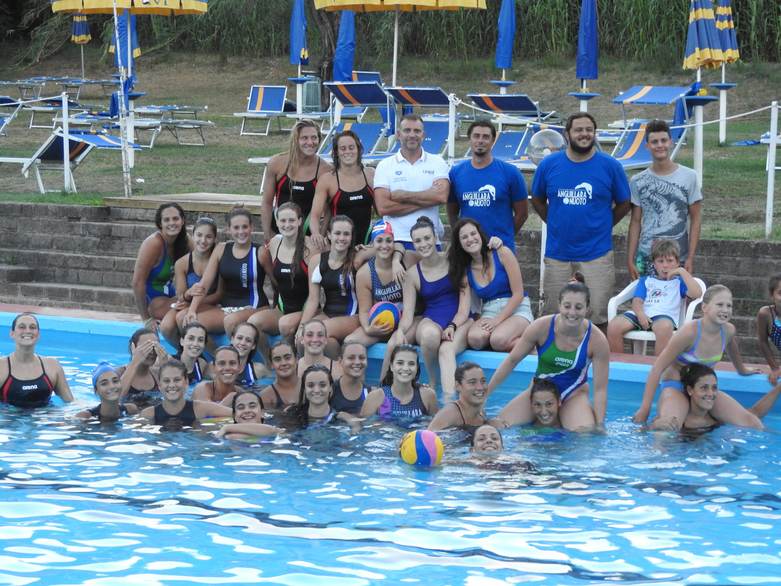 Prima della fine dell’allenamento sono entrate in acqua anche alcune ragazze delle squadre di Pallanuoto di Anguillara che in un clima festoso si sono divertite a palleggiare e a farsi fare foto e video insieme alle azzurre.