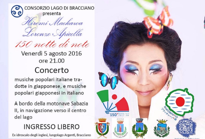 E’ la volta infatti del concerto “150 Notte di Note” di Hiromi Maekawa che si esibirà a bordo della motonave Sabazia II in navigazione in notturna sul lago. Per rinnovare i legami di amicizia, la cantante interpreterà alcuni celebri brani italiani ed altri giapponesi.
