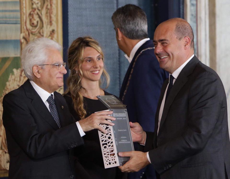 Il presidente Nicola Zingaretti, ha ritirato al Quirinale, dalle mani del capo dello Stato, Sergio Mattarella, il ‘Premio Innovazione 2016’ per il portale Open Data Lazio.