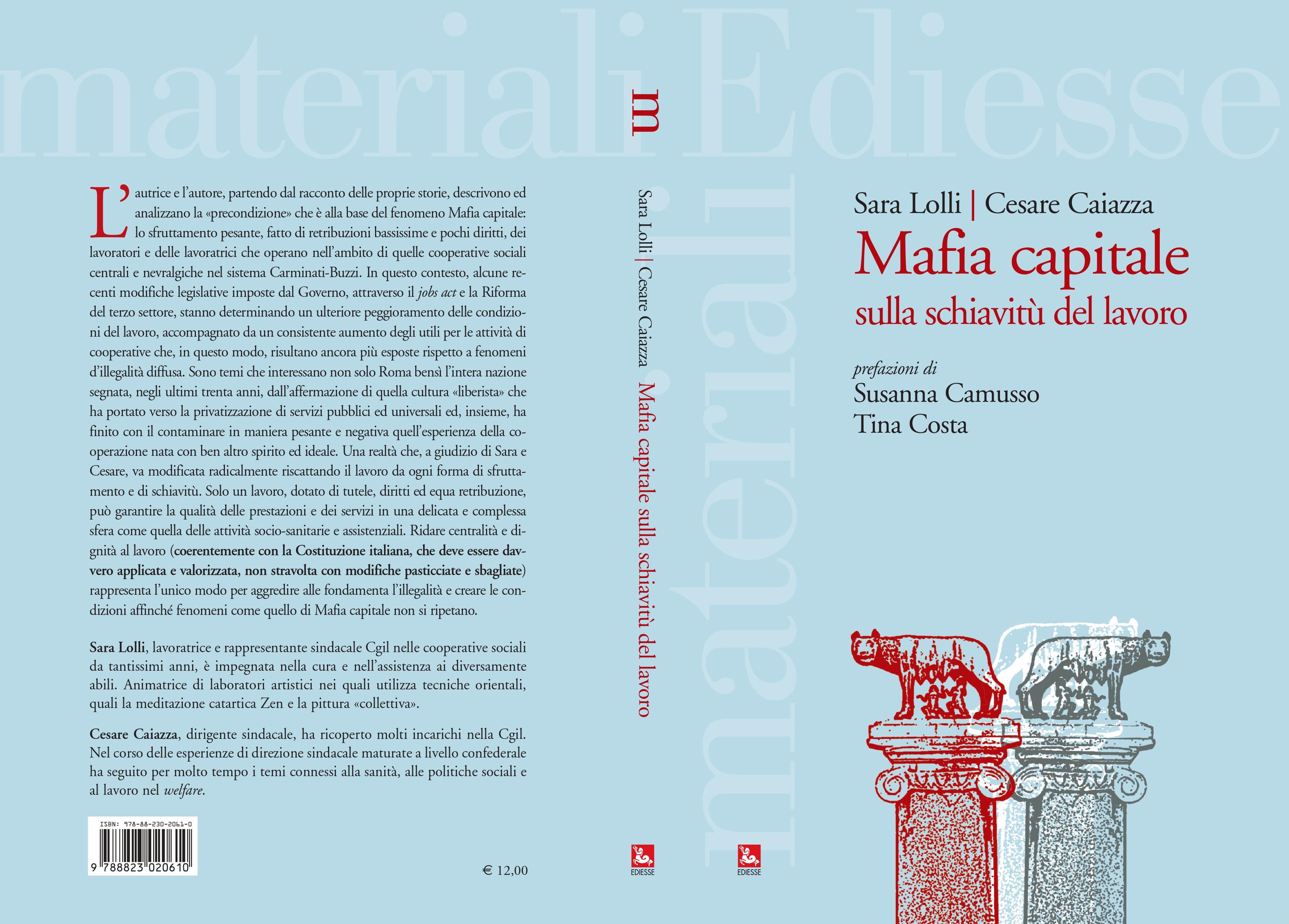 “E’ appena uscito il libro, del quale siamo autori, “Mafia capitale sulla schiavitù del lavoro”, pubblicato da EDIESSE, con le prefazioni del Segretario Generale della CGIL, Susanna Camusso e della Staffetta Partigiana, Tina Costa. Il libro sarà presentato nell’ambito di due prime iniziative (descritte nelle locandine che inviamo nei successivi allegati) di confronto pubblico su “lavoro e legalità” – aperte alla partecipazione e al contributo di lavoratori, pensionati e cittadini e nelle quali interverranno rappresentanti delle Istituzioni, politici e dirigenti sindacali – che si terranno a Roma (il 12/10) e a Civitavecchia (il 20/10). Il libro, come racconta schematicamente la scheda contenuta nella copertina che inviamo in un ulteriore allegato, partendo dal racconto delle nostre storie descrive ed analizza la precondizione che è alla base di fenomeni come Mafia capitale: lo sfruttamento pesante dei lavoratori che operano nel sociale (caratterizzato da salari effimeri e pochi diritti) e gli enormi utili per le cooperative che, nel divenire imprese e smarrendo lo spirito originario “mutualistico, solidale e senza scopo di lucro”, divengono appetibili anche per interessi criminali e mafiosi. Descrive come le recenti modifiche legislative, imposte dal Governo, in tema di riforme del lavoro e del terzo settore, finiscono per ingigantire questa inaccettabile condizione. Prova ad avanzare delle proposte (anche in termini di possibile “reinternalizzazione e ripubblicizzazione” di tutti i servizi “socio- sanitari e assistenziali”) finalizzate a riaffermare la legalità attraverso il pieno riconoscimento della dignità e dei diritti del lavoro, direttamente proporzionali con i diritti e la dignità di ogni persona che ha bisogno di cure ed assistenza. Infine, ma non per ultimo, nel libro abbiamo evidenziato come l’attuale inaccettabile condizione segnata dalla menomazione di diritti fondamentali, è in stridente contrasto con i principi della nostra straordinaria Costituzione, nata dalla Resistenza e dalla lotta di Liberazione contro il nazi-fascismo e fondata sul lavoro. Una Costituzione che – come scrive nella prefazione la Staffetta Partigiana, Tina Costa – ha il solo difetto di “non essere applicata” e non ha certo bisogno di essere modificata con riforme pasticciate, confuse e sbagliate.”
