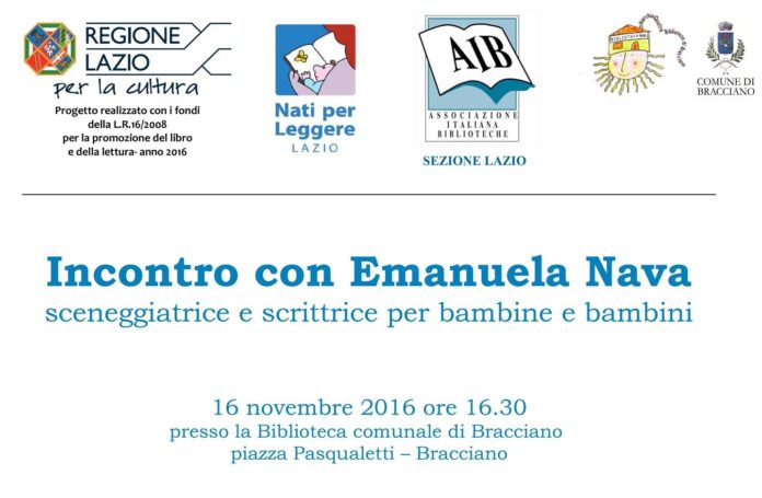 Il 16 novembre alle ore 16:30, presso la Biblioteca Comunale di Bracciano, si terrà l’incontro con Emanuela Nava, sceneggiatrice e scrittrice per bambine e bambini.