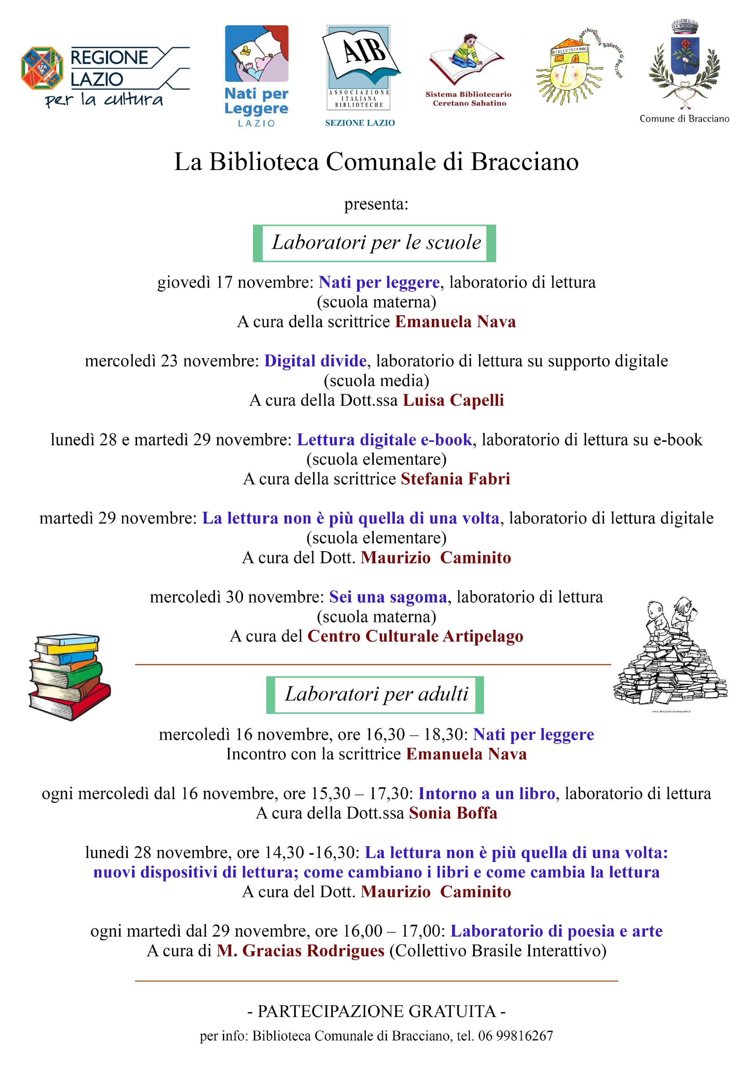 Di seguito il calendario delle attività culturali del mese di novembre, in programma presso la Biblioteca comunale di Bracciano.