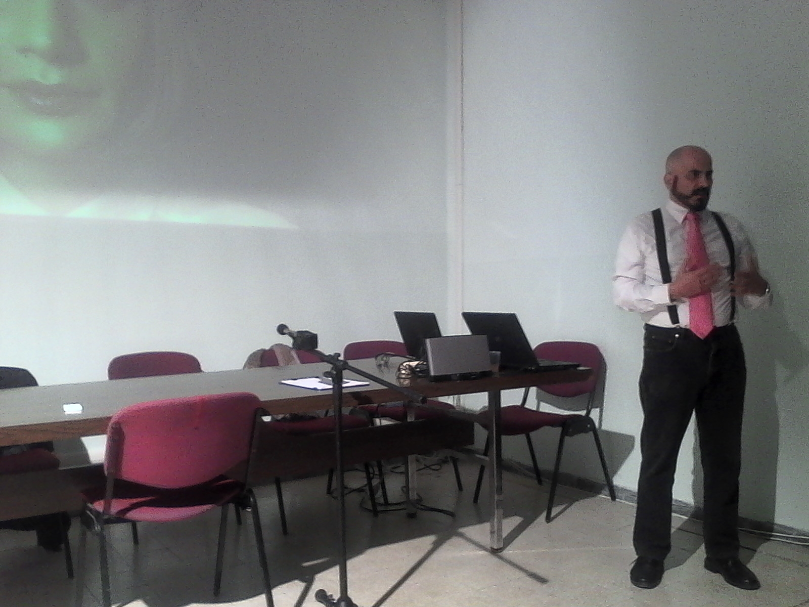Nell’aula conferenze dell’Istituto Salvo D’Acquisto di Castel Giuliano gli insegnanti e professionisti del settore Massimiliano Mercuri (insegnante di make up e regista del corto) e Gianfranco Sforzin (tecnico di presa diretta, aiuto regista, fotografo) hanno presentato al pubblico il frutto del lavoro e della passione degli studenti da loro seguiti in almeno cinque scuole di Roma e provincia.