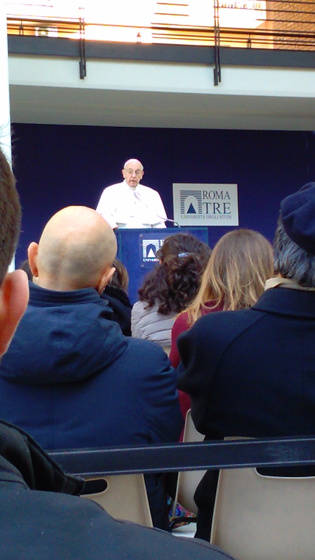 Venerdì 17 febbraio alle ore dieci della mattina al rettorato di Roma tre sito in via ostiense 159 si è verificato un evento di immensa portata e importanza. Papa Francesco è venuto ha fare visita agli studenti e hai responsabili dell’Università di Roma tre. Per la prima volta il papà in tutta la storia delle università italiane è giunto a visitare un istituto universitario statale. I biglietti sono stati distribuiti solo a 300 degli studenti di Roma tre scelti fra rappresentanti e senatori accademici, tra le file riservate spiccano in primo piano il magnifico rettore Mario Panizza, che ha voluto estendere l’invito a tutti i rettori del Lazio. Poi la figura di monsignor Leuzzi il responsabile della cappellania universitaria e tutti gli alti dirigenti dell’Università Gianni Letta e la ministra dell’istruzione Fedeli. Ed il sindaco di san Giuseppe Iato.