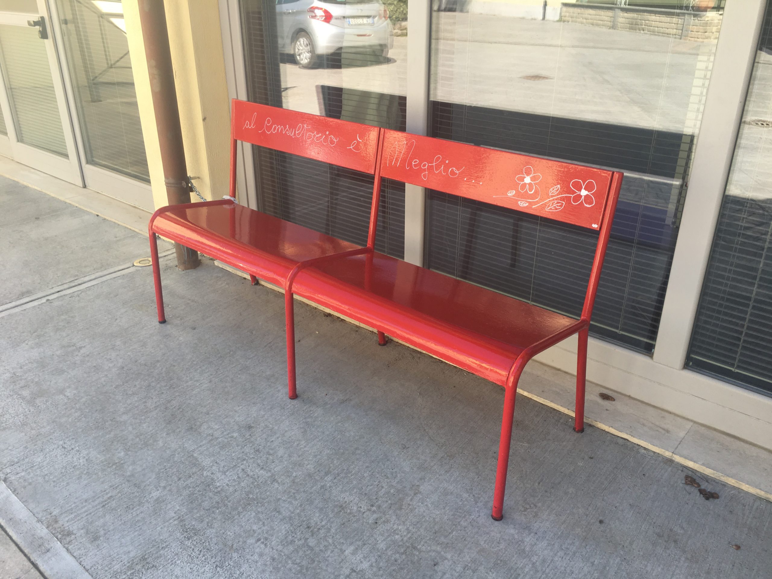 Sulla panchina è scritto un messaggio “Al consultorio è meglio” per ricordare alle donne che presso i consultori è possibile trovare assistenza sanitaria e supporto psicologico grazie alla molteplici attività svolte in sostegno alla famiglia.
