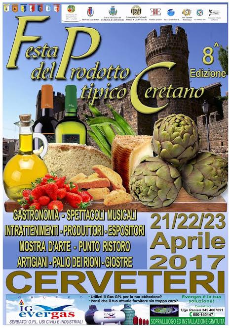 “Come tradizione del mese di Aprile torna uno degli appuntamenti che ogni anno richiama nella nostra città migliaia di visitatori provenienti da tutto il Lazio – ha dichiarato Alessio Pascucci, Sindaco di Cerveteri – per tre giorni nel cuore di Cerveteri, a due passi dal meraviglioso Museo Nazionale Caerite, che ospita la Kylix ed il Cratere di Eufronio, ci sarà una grande festa di musica e intrattenimento che farà conoscere le eccellenze enogastronomiche e culturali della nostra città. La Festa del Prodotto Tipico Ceretano è diventato oramai un appuntamento fisso per Cerveteri. Sono certo che anche quest’anno sarà una festa davvero imperdibile”.