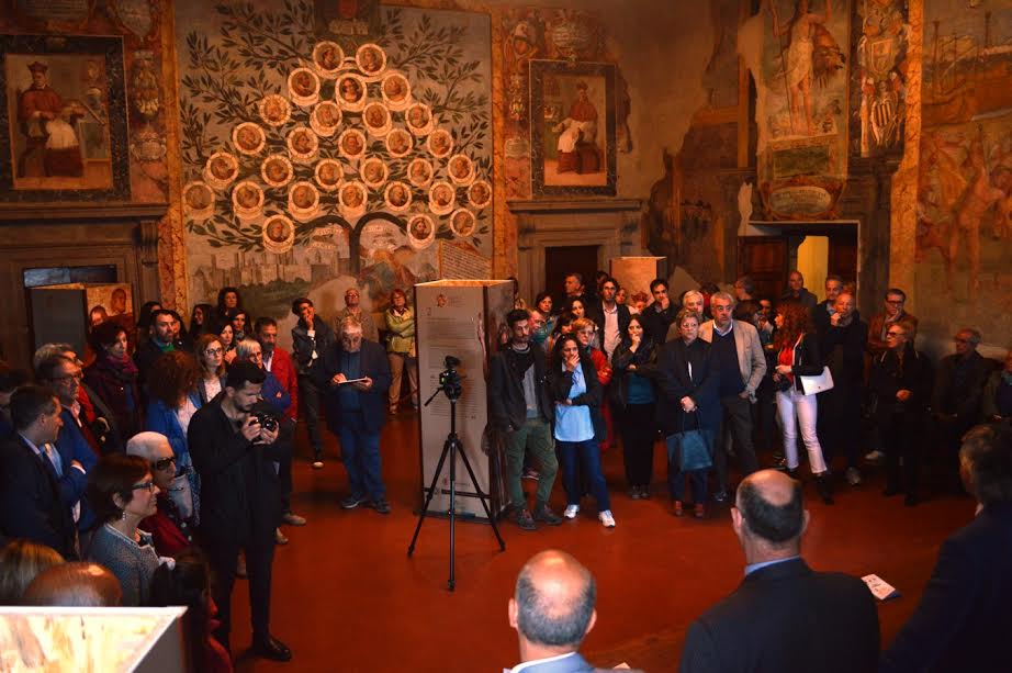 Tantissime persone all’inaugurazione dell’applicazione di realtà aumentata e virtuale che dà vita ai personaggi della Sala degli Affreschi del palazzo comunale. A fare gli onori di casa l’assessore al turismo Sandro Celli promotore del progetto creato in collaborazione con la startup tarquiniese Skylab Studios. Presenti il sindaco Mauro Mazzola e l’assessore ai lavori pubblici Anselmo Ranucci.