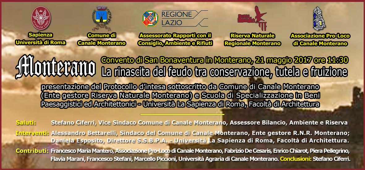 Nella cornice storico-folkloristica dell’evento “La rinascita del feudo”, manifestazione ambientata presso l’antico abitato di Monterano e fatta di spettacoli teatrali, combattimenti tra cavalieri e giochi popolari, l’Amministrazione Comunale di Canale Monterano, ospitata dalla locale associazione Pro-Loco e in collaborazione con l’Università di Roma “La Sapienza”, la Regione Lazio e la Direzione della Riserva Naturale Regionale Monterano, proporrà domenica 21 maggio alle ore 11:30, il dibattito: “Monterano, la rinascita del feudo tra conservazione, tutela e fruizione”. Introdurrà Stefano Ciferri, Vice Sindaco e Assessore alla Riserva. Interverranno Daniela Esposito, Direttore dello S.S.B.P.A. – Università La Sapienza di Roma, Facoltà di Architettura, il Sindaco di Canale Monterano Alessandro Bettarelli e il Vicesindaco Stefano Ciferri. Previsti i contributi di Francesco Maria Mantero, Mattia Fiorucci, Fabrizio De Cesaris, Enrico Chiarot, Piera Pellegrino, Flavia Marani, Francesco Stefani, Marcello Piccioni e altri esperti del settore.