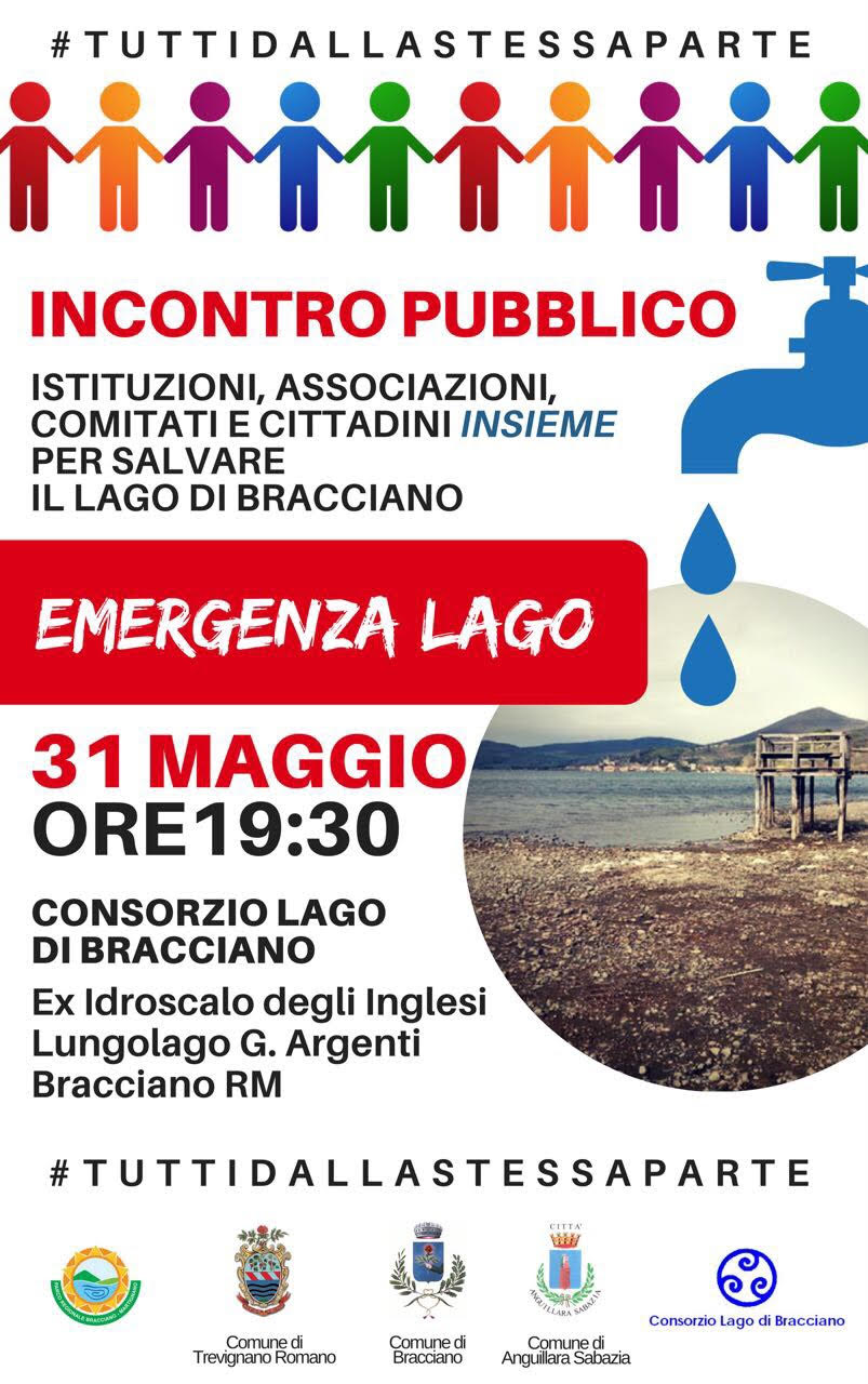 Il 31 maggio #tuttidallastessaparte per la salvaguardia del Lago di Bracciano. Istituzioni, Cittadini, Associazioni e Comitati locali sorti per l’emergenza tutti insieme uniti, per decidere le ulteriori azioni e le strategie da intraprendere per difendere il nostro Lago dal drammatico abbassamento dei suoi livelli idrometrici. #avantilago